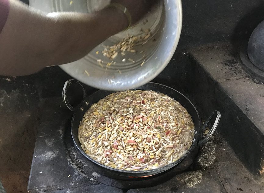 キッチンで働いているマー(お母さん)達の好意によりバナナの花をもらえた。笑